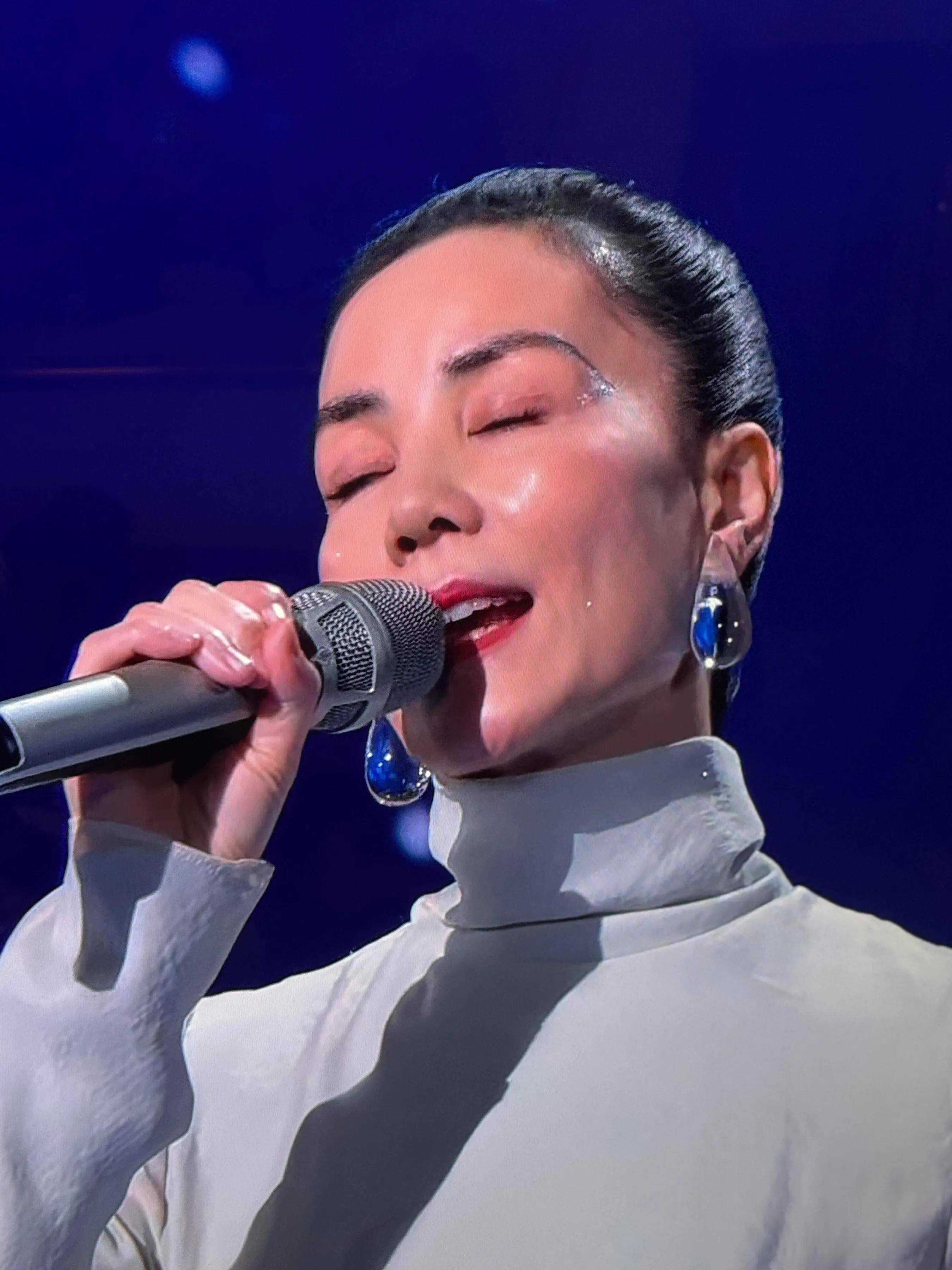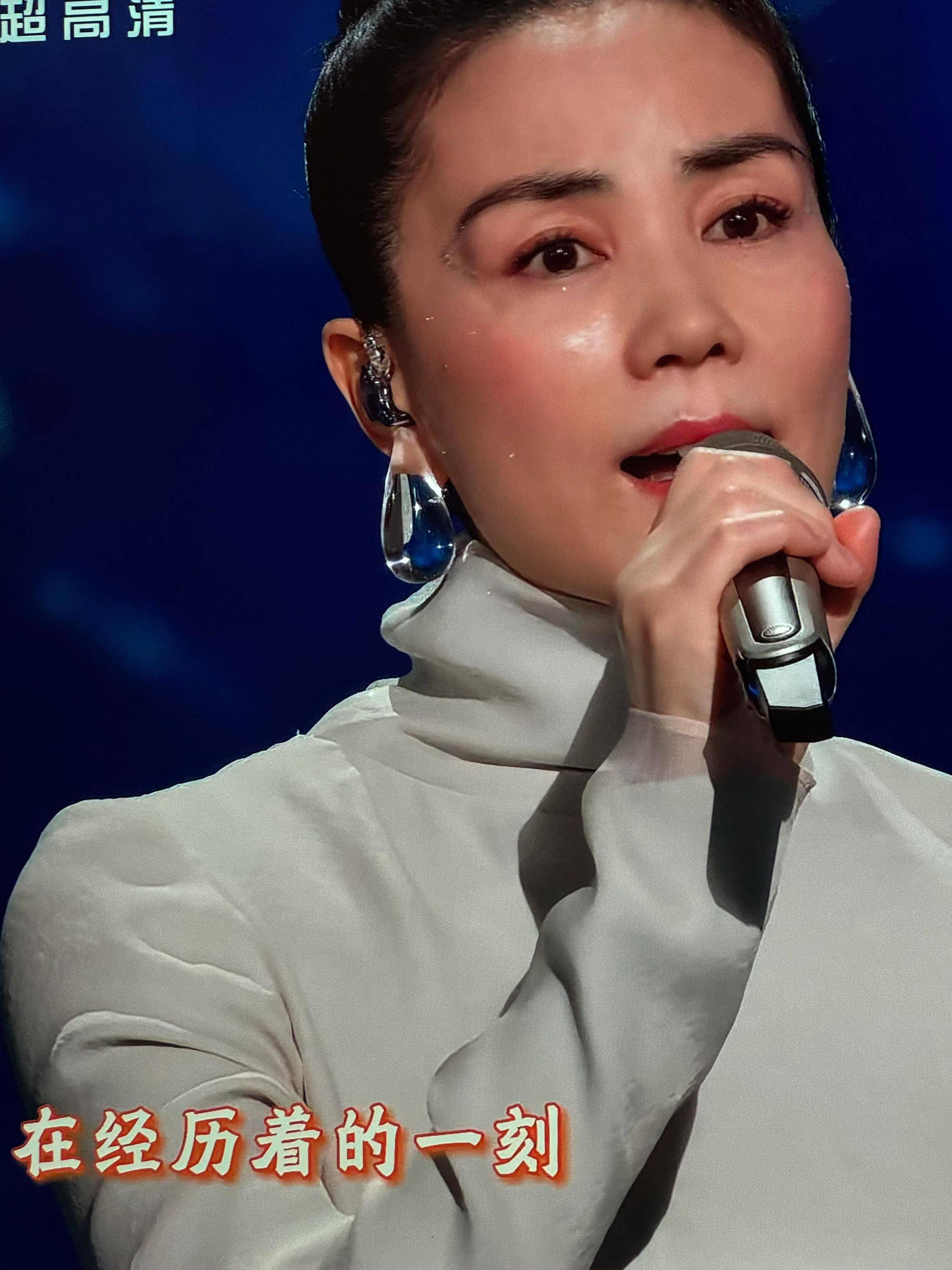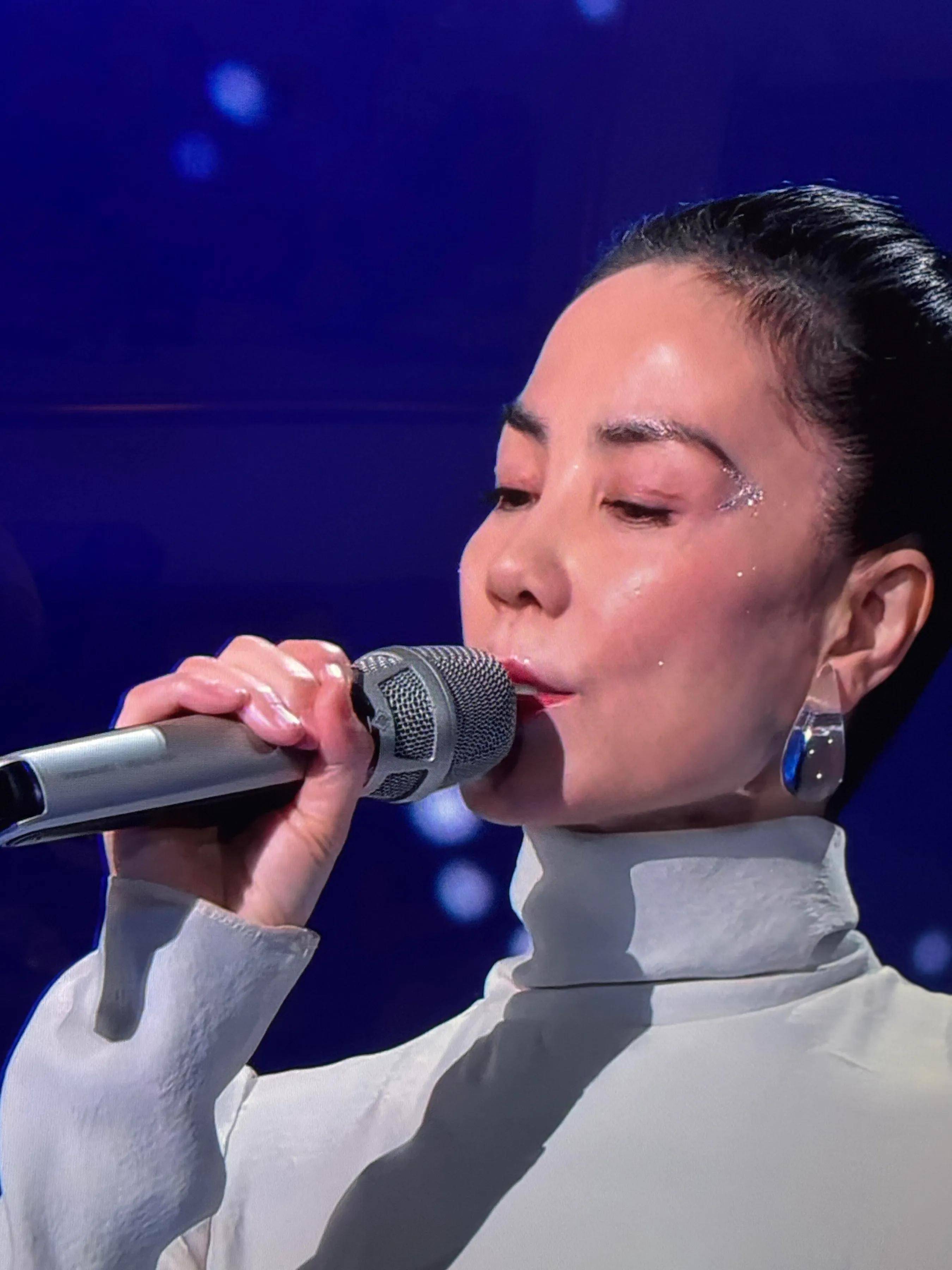 王菲的皮肤很紧致细腻,眼周虽然爬满了小细纹,但是57岁的她很真实。王菲确实不年轻了,但是她的状态很好,声音还是那么动听。这一夜,王菲的音很准,这首歌虽然很平,但她的演绎很精彩。