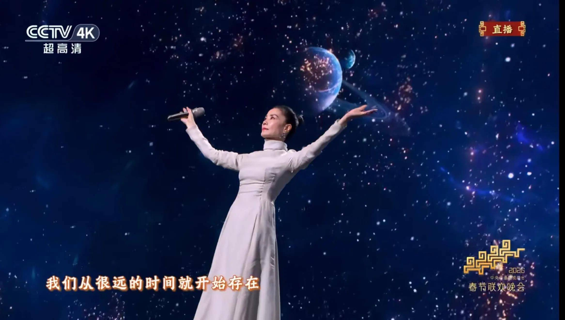 王菲穿一身白裙在春晚的舞台上唱《你我经历的一切》,她戴着水滴型耳饰站在舞台上,这个耳饰和浩瀚星辰的舞台很搭,她的耳饰又火了。57岁的王菲在央视镜头里很美,她脸上的小细纹很真实。