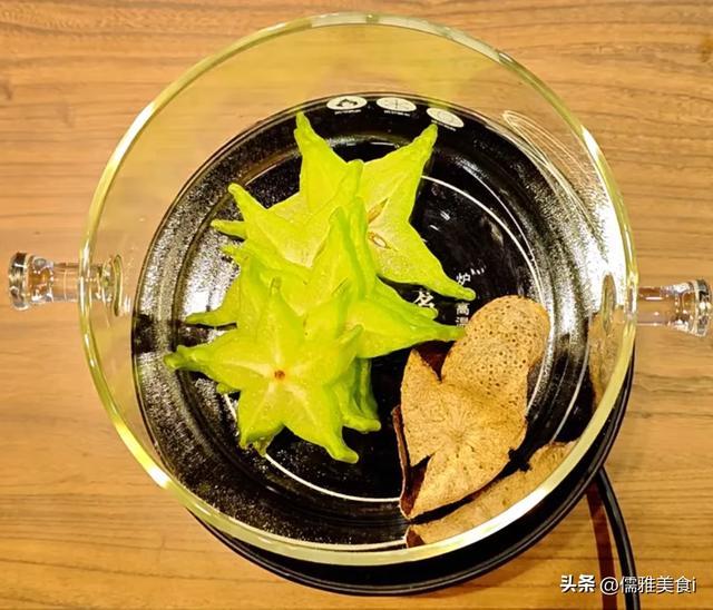 3. 锅中加适量清水,放入杨桃片、陈皮,大火煮开后转小火煮15分钟。