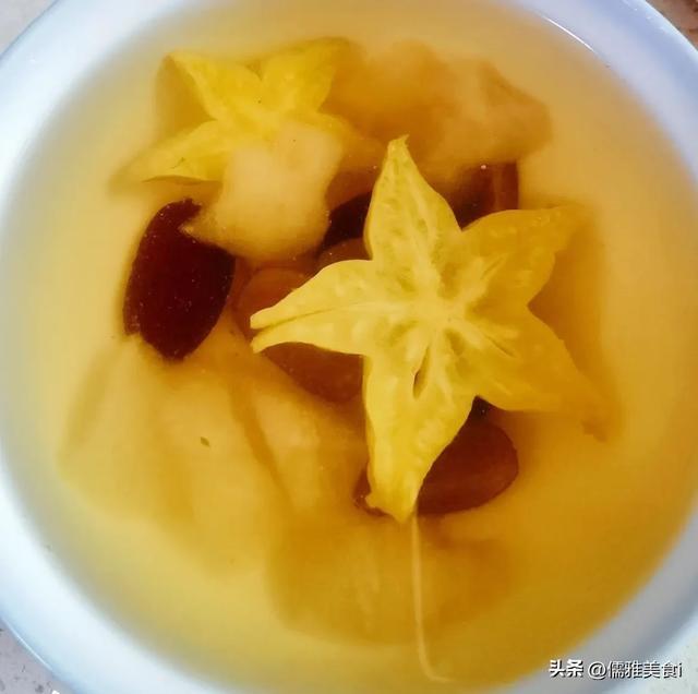 杨桃1个、老陈皮1瓣、枸杞少许、冰糖少量(可选)