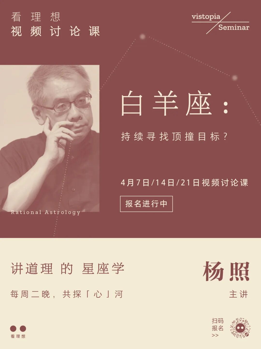 ♈️ 杨照视频讨论课《讲道理的星座学》白羊座专题:持续寻找顶撞目标?4月7日/14日/21日 开课现在报名,参与直播讨论 赠 星座总论3讲(回放观看)